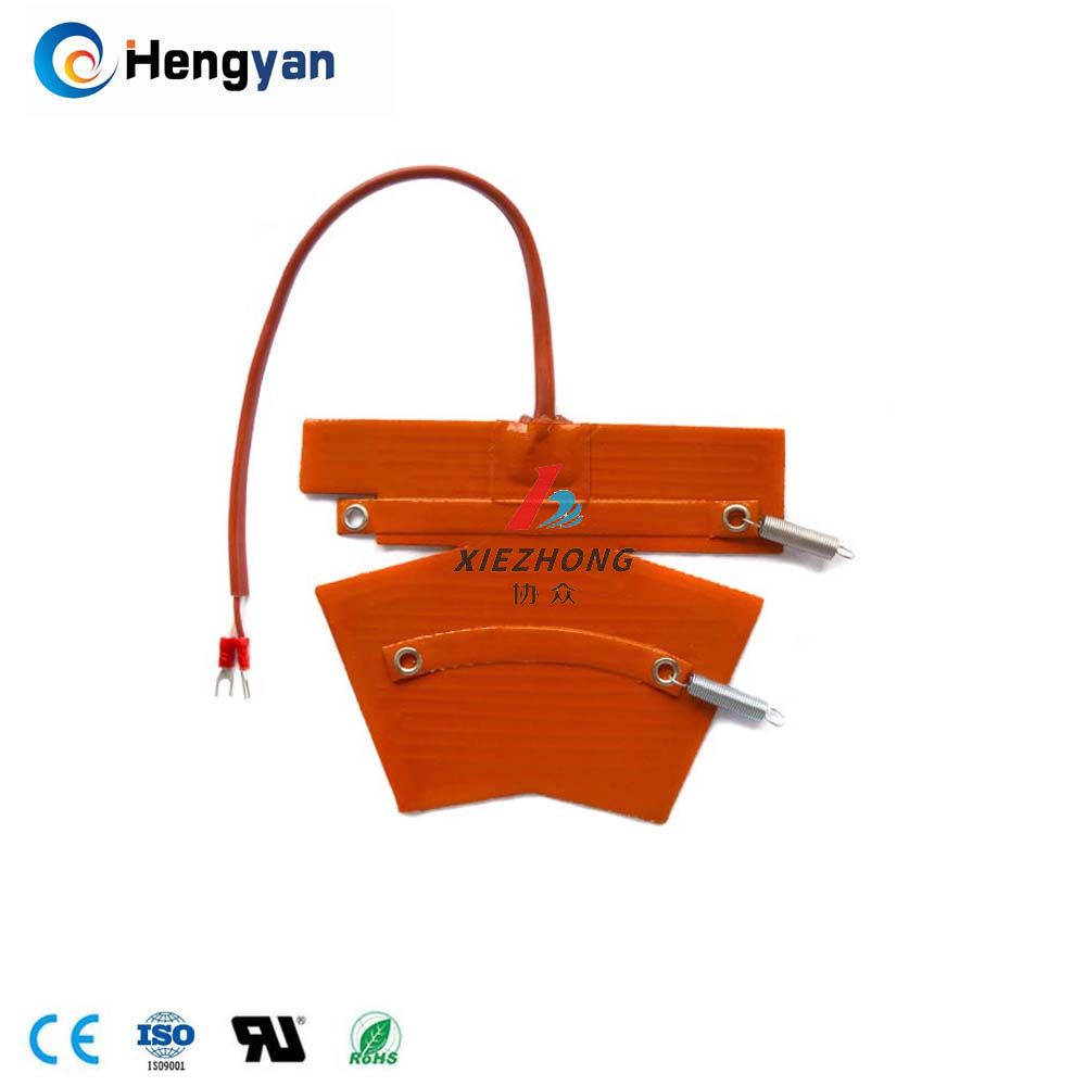 加熱片由合金電阻絲均勻分布在硅橡膠絕緣層上,形狀可以自由定制定,制做完成后不可裁剪。尺寸要求:長(zhǎng)(mm)*寬(mm),默認(rèn)厚度1.6mm,大功率或者有特殊需求的可以按照客戶需求加厚。